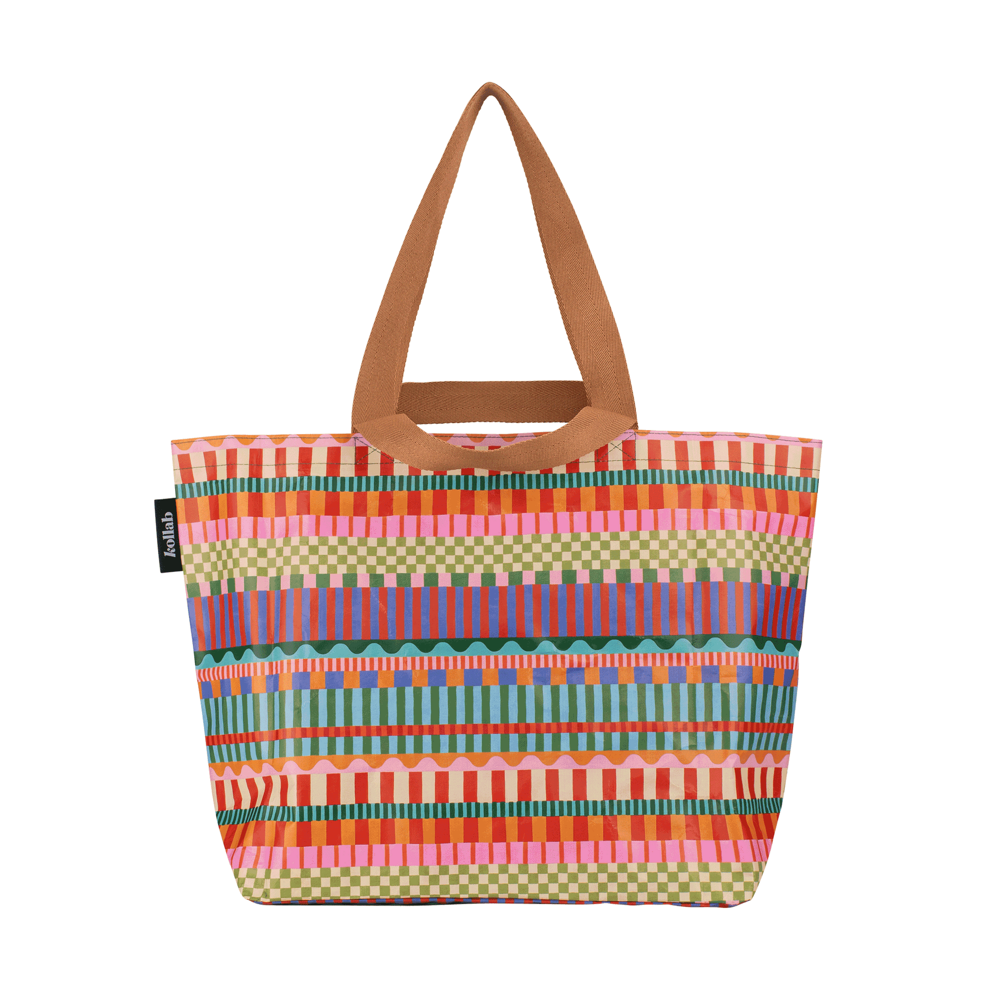The Shopper Tote Blocks and Stripe from Kollab is an everyday essential that is far from basic.