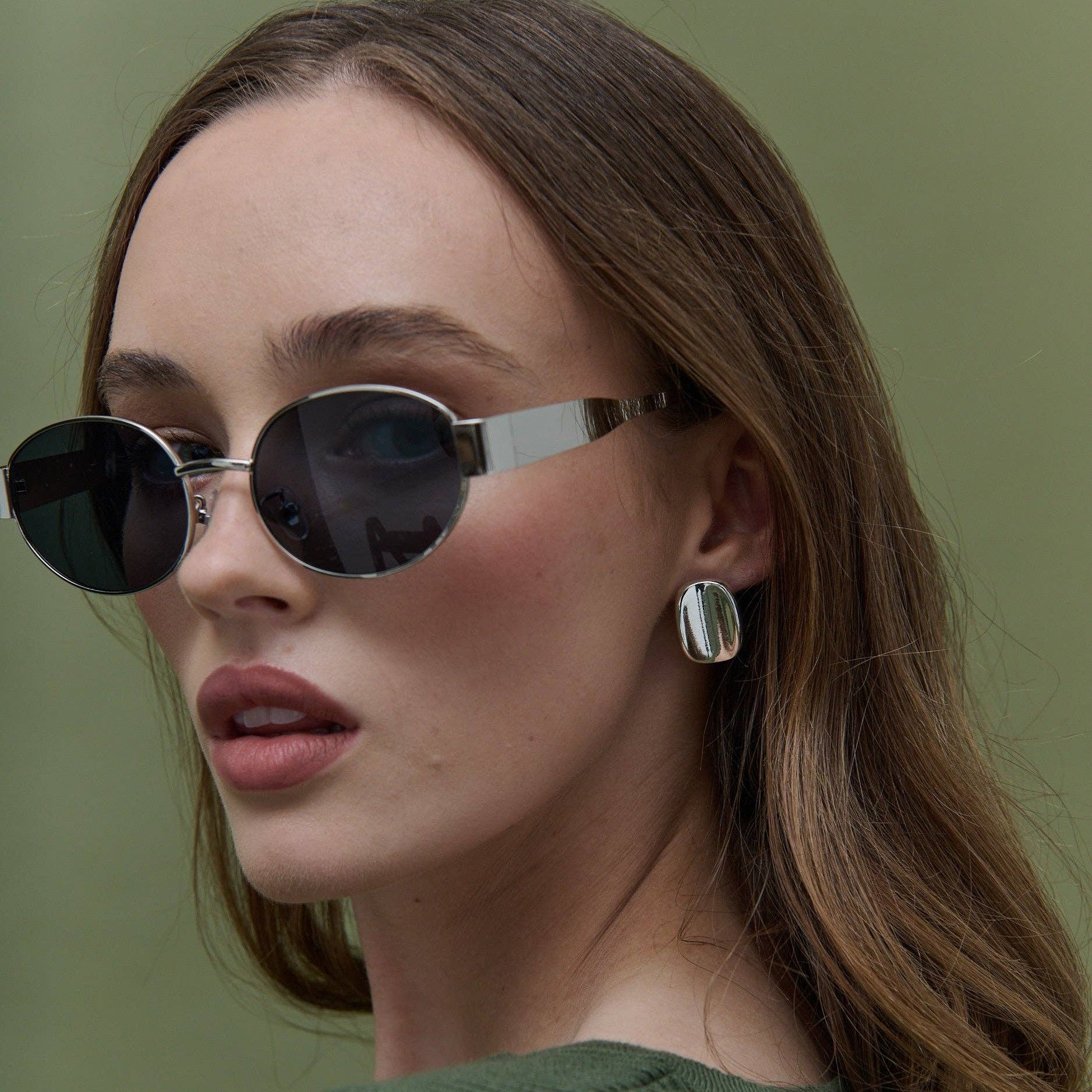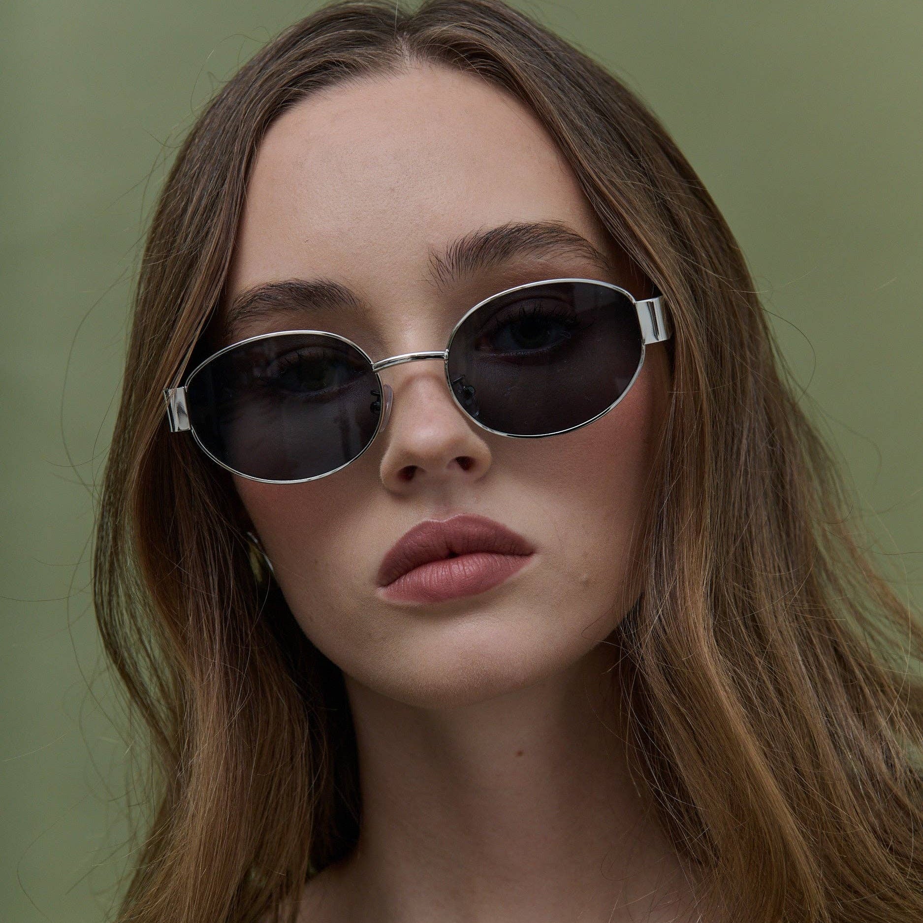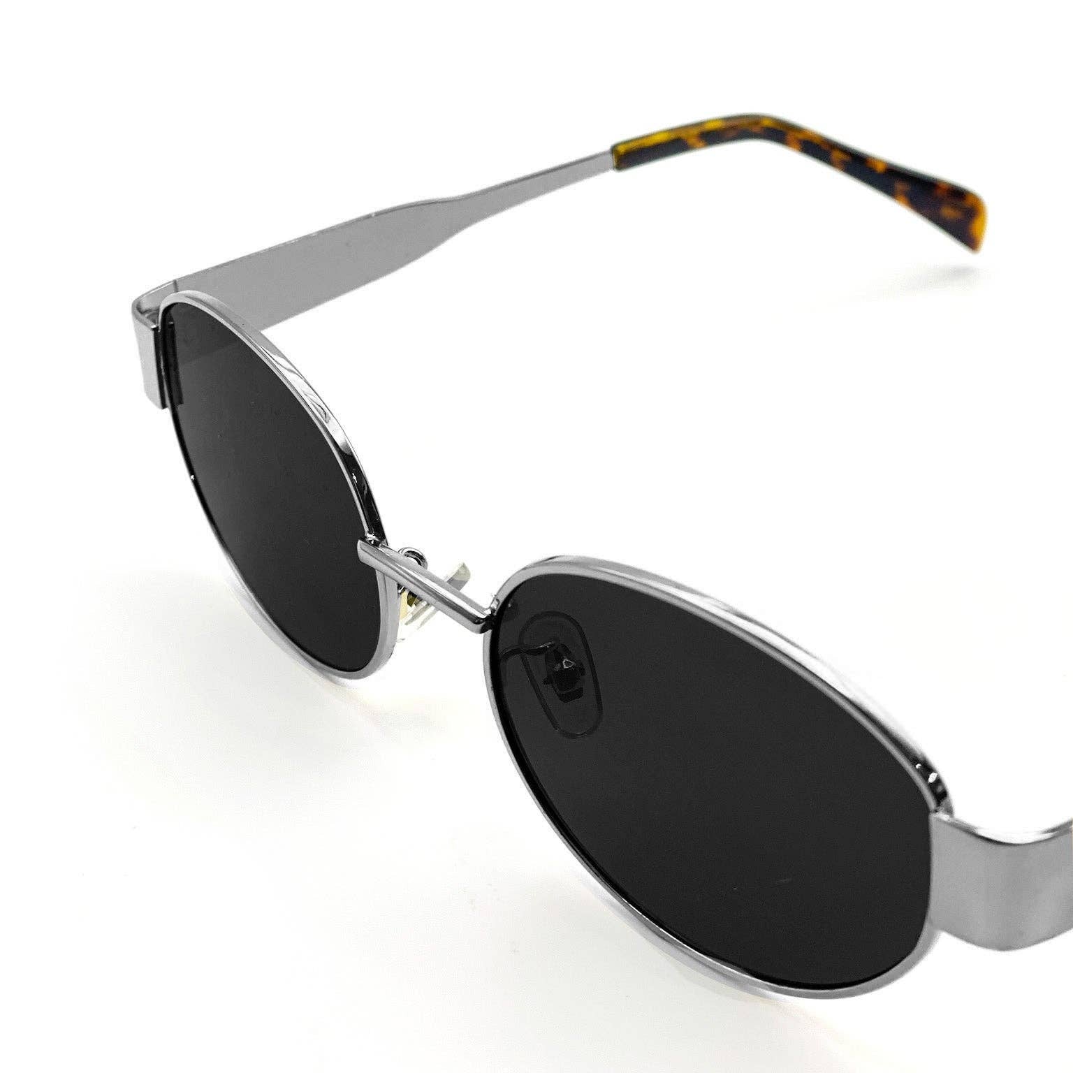 L&S Round Silver Metal Oval Sunglasses in Black